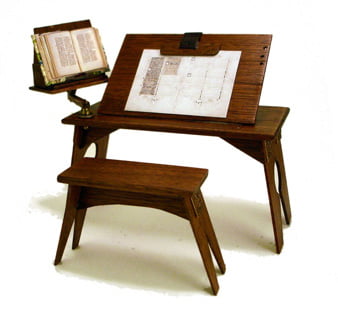 I have grown ever more envious of Emma because Nicholas bought her a super wonderful scribe desk. As I was reading the description of features he’d like to have on the desk, I was burnt with total envy. I want that desk! Oh well, here’s a depiction of what my dream Schreibtisch. Of course, Google has an image of it.